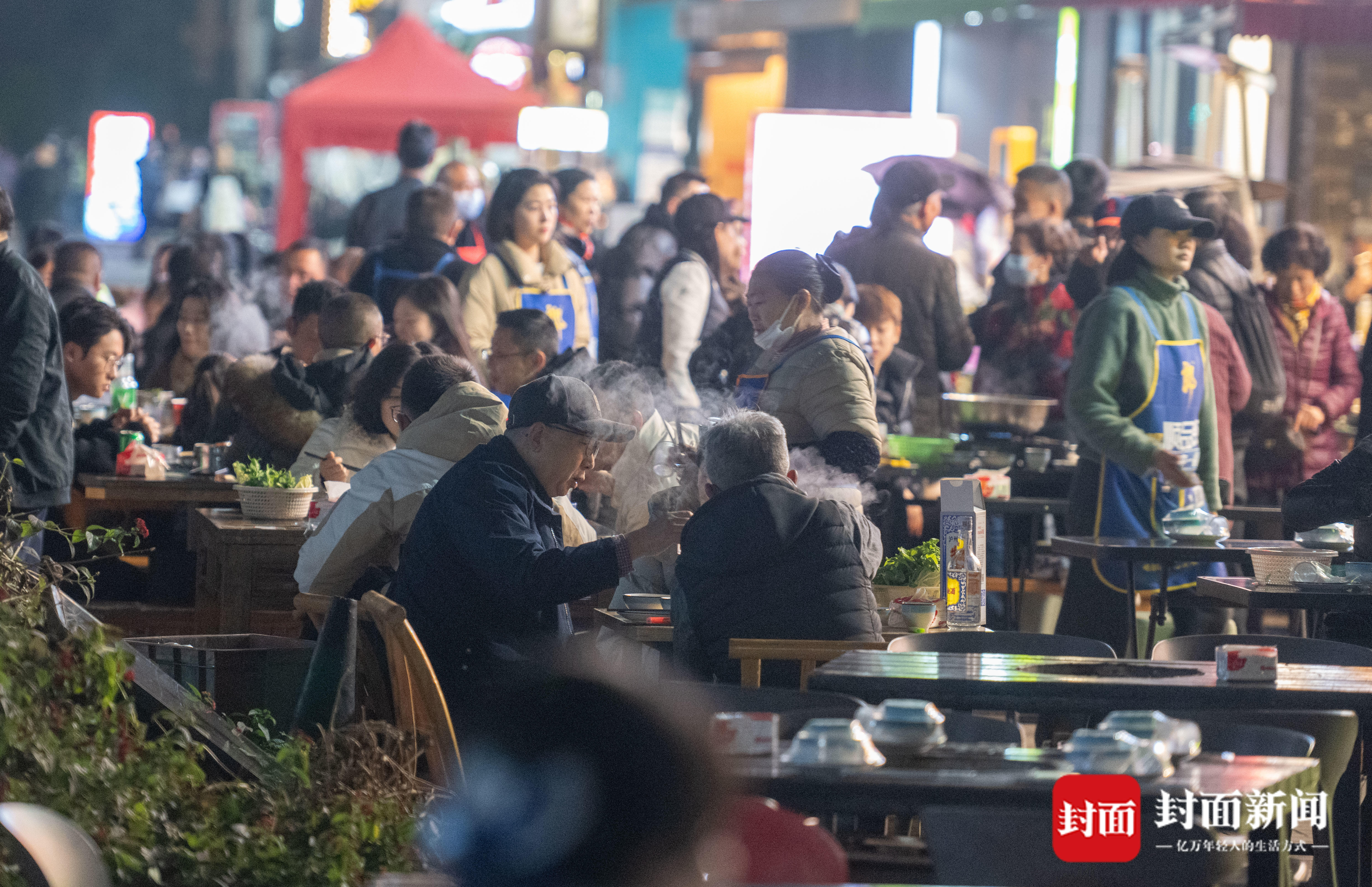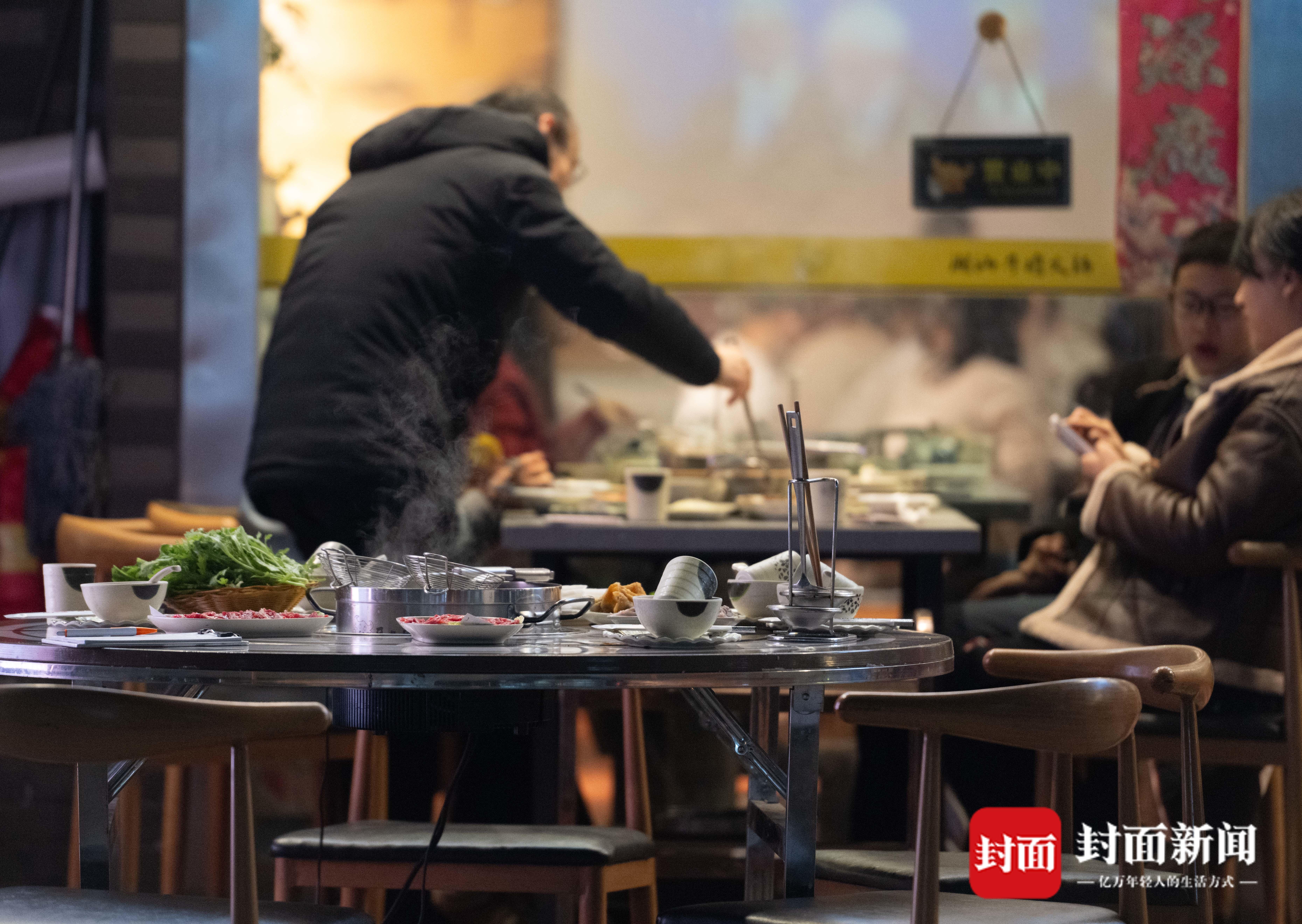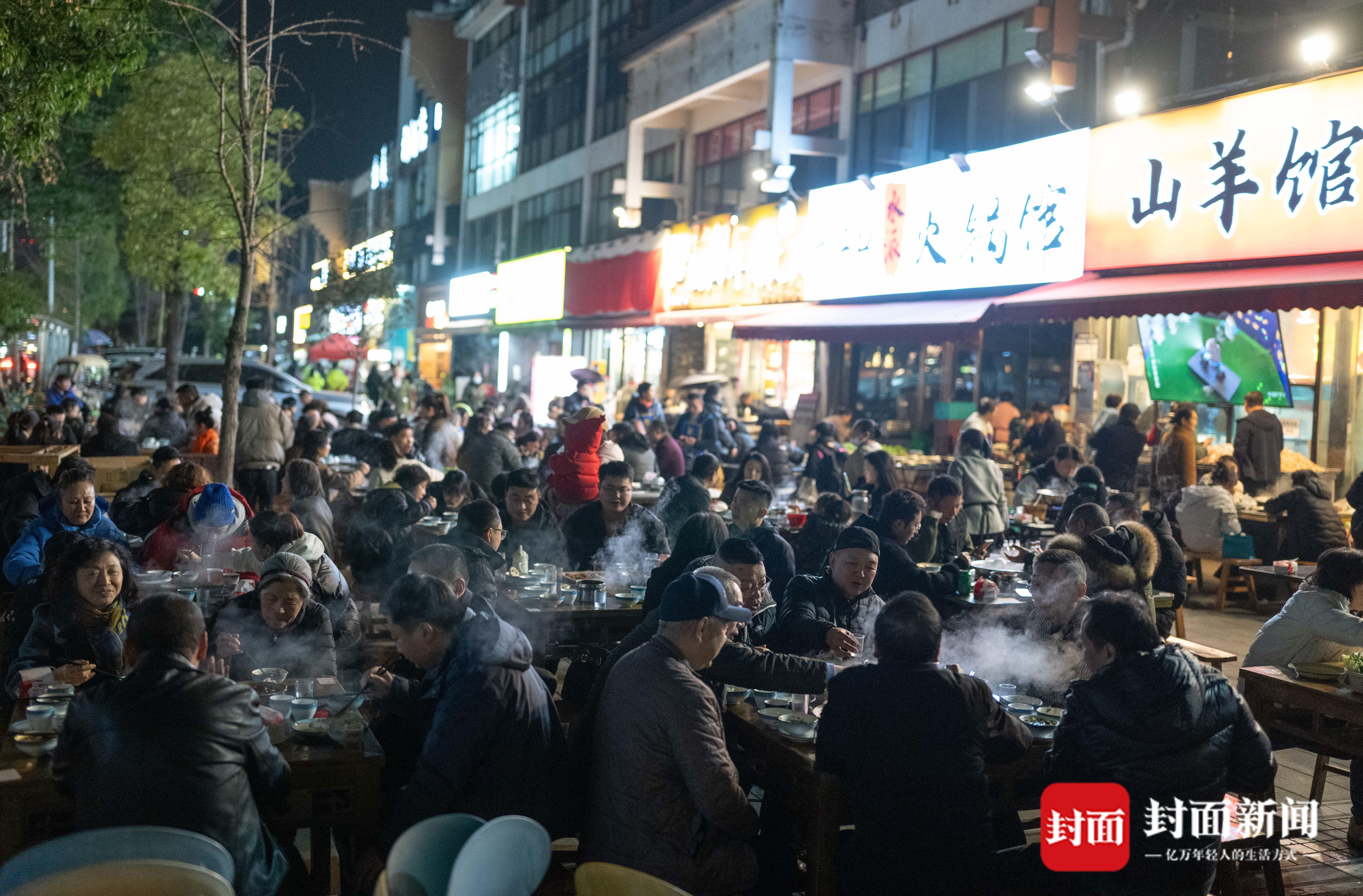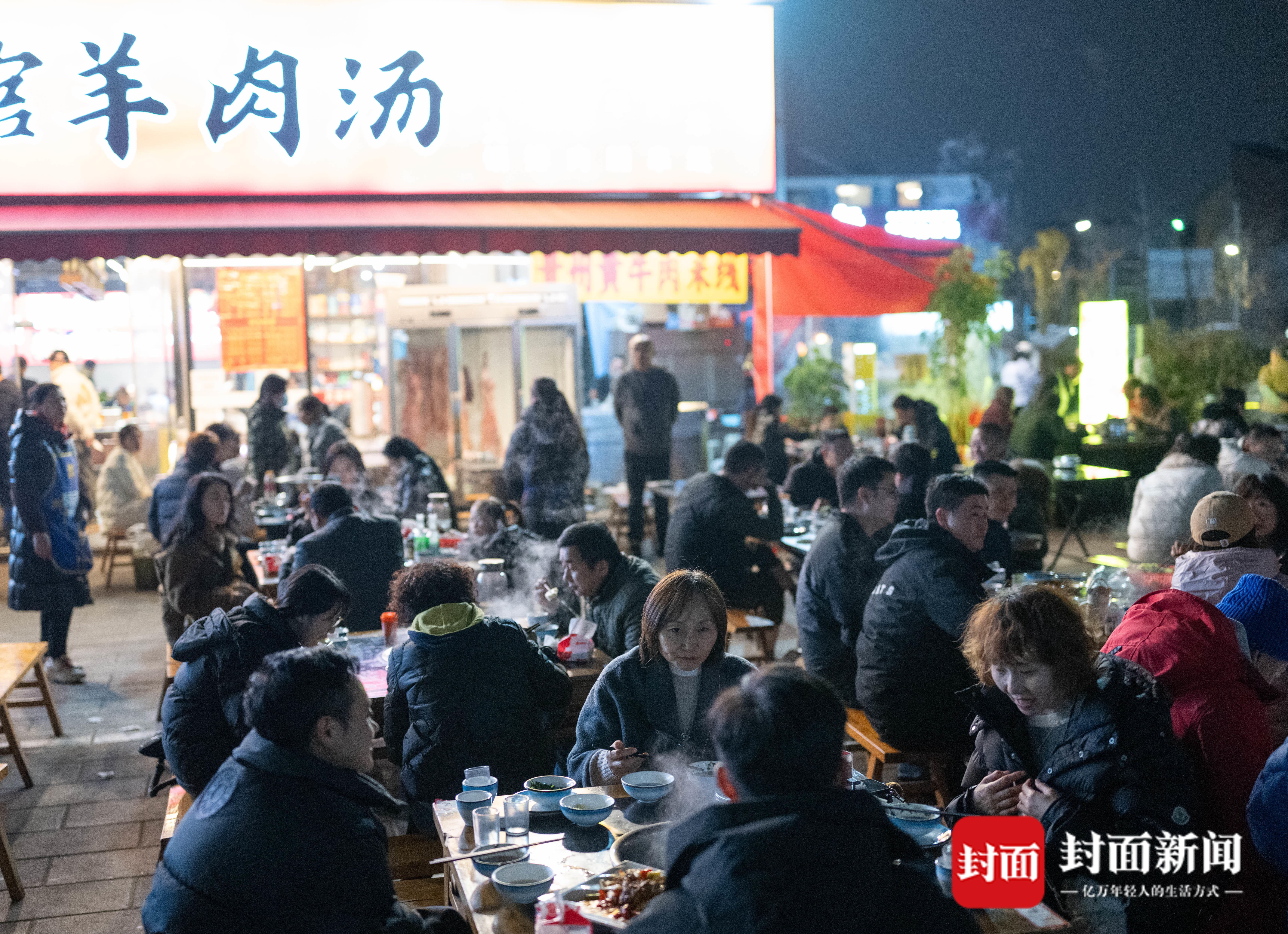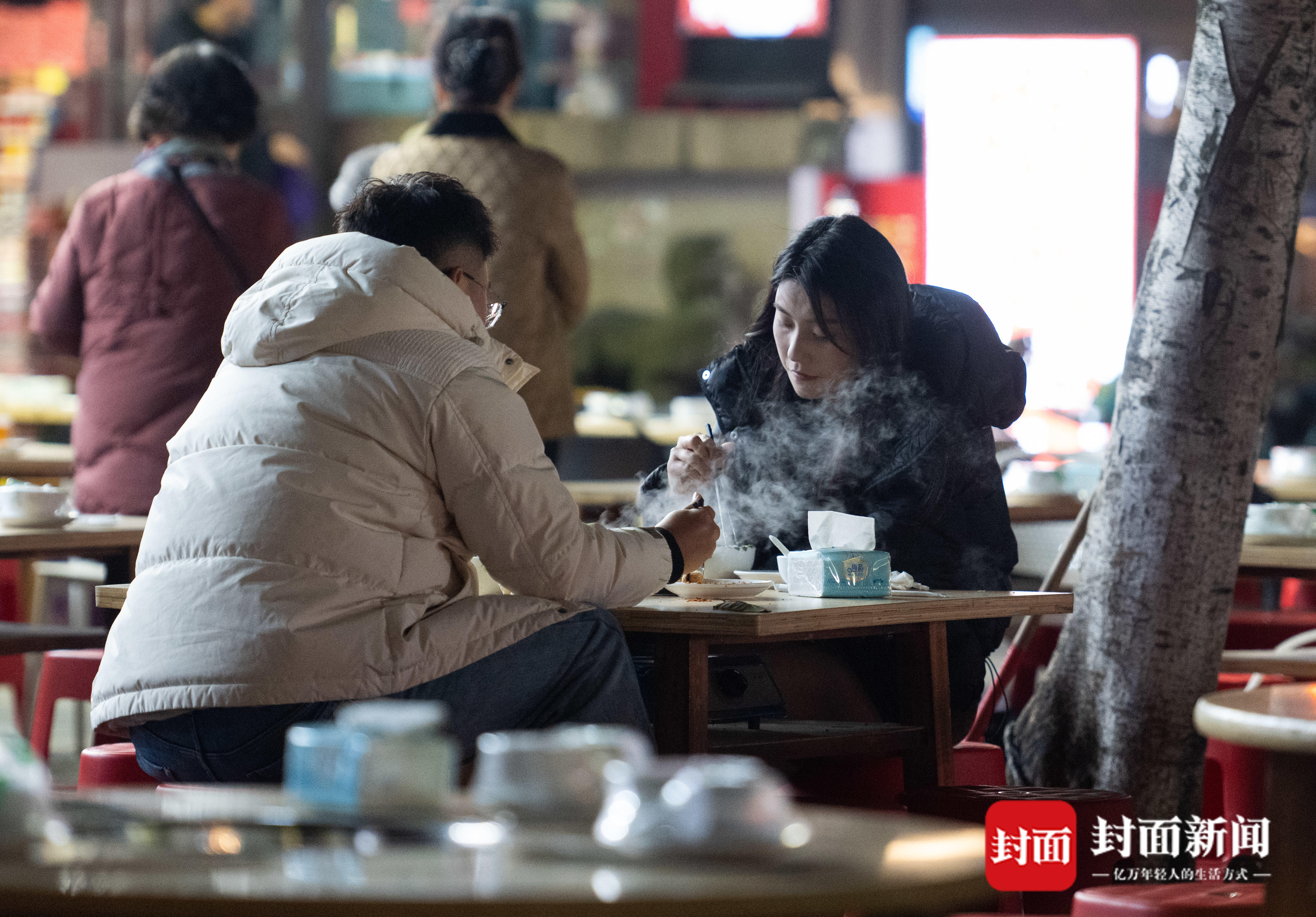 2025年12月21日,成都市青羊大道金沙遗址博物馆附近一家羊肉汤餐馆,食客们品尝热气腾腾的羊肉汤。