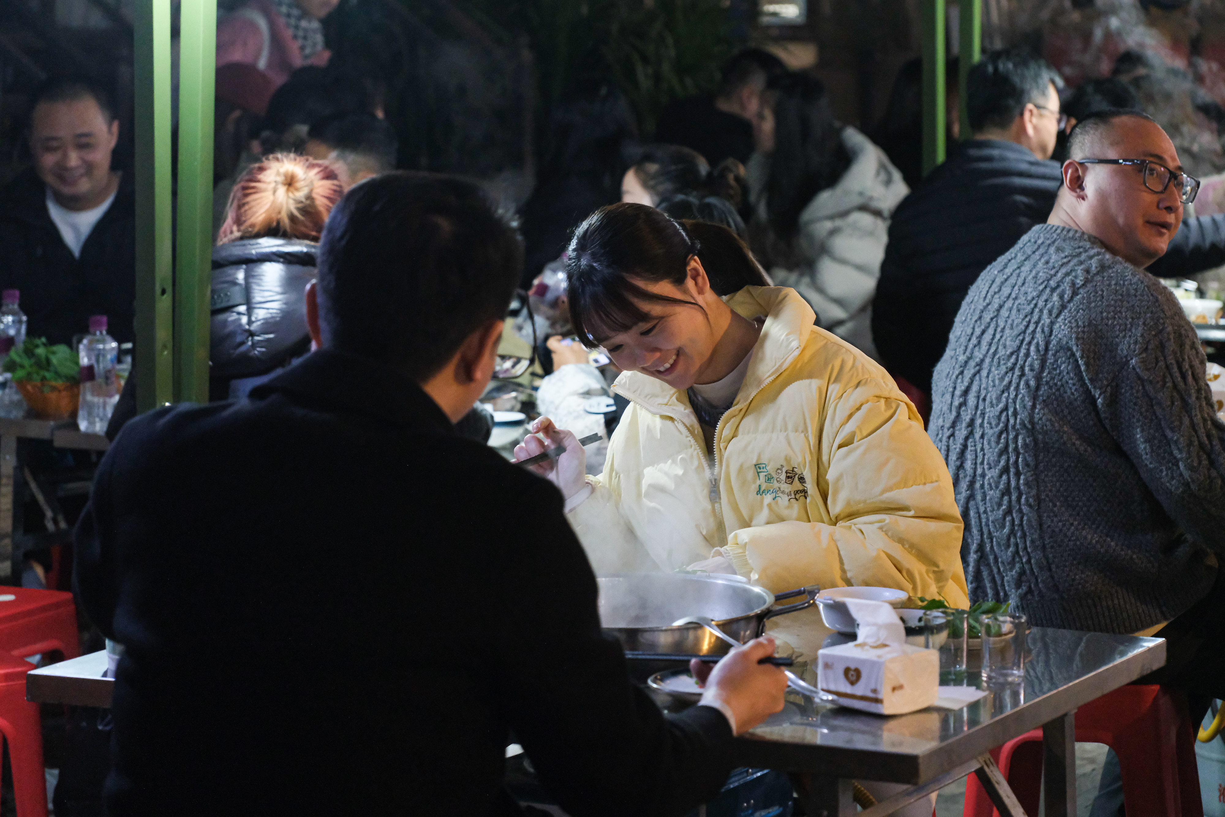 市民张女士一行人临时决定就餐,晚上7点10分抵达时,被告知需要排队。不过,在7点半左右,桌位已陆续空出。张女士说,冬至来“羊肉汤一条街”天天盈,吃的就是氛围感,“热热闹闹,希望新的一年日子也越来越红火。”